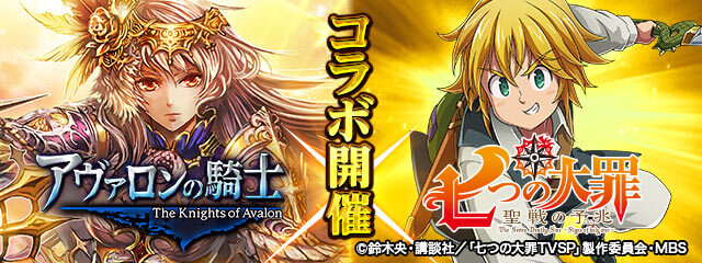 「七つの大罪」と280万人が遊んだファンタジックRPG「アヴァロンの騎士」とのコラボイベントを開催!コラボイベントで超期間限定ジョブ「メリオダス」「バン」をGETしよう!