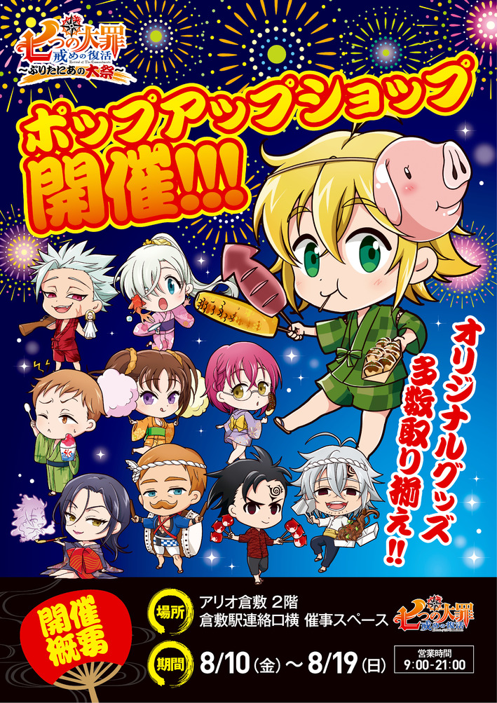 「七つの大罪 ぶりたにあの大祭」をモチーフにしたポップアップショップをアリオ倉敷にて開催!!