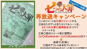 ①公式Twitterよりツイートされる、下記の【七つの大罪再放送キャンペーン開始!】のツイートを引用リツイート